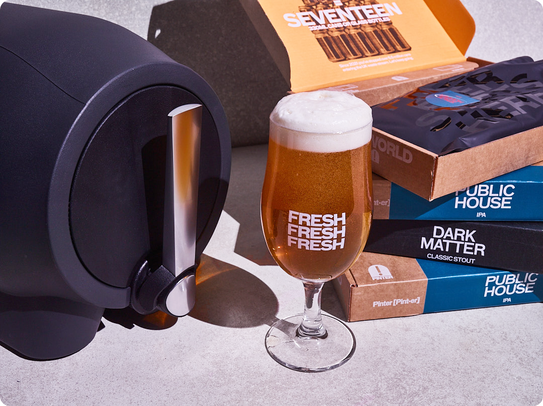 The fresher the beer, the better the flavor. This is what sets Fresh Beer apart: it's tapped directly from the Pinter as soon as it's finished brewing and enjoyed when the flavor is at its peak. No packaging, no storage, no risk of degraded flavor.